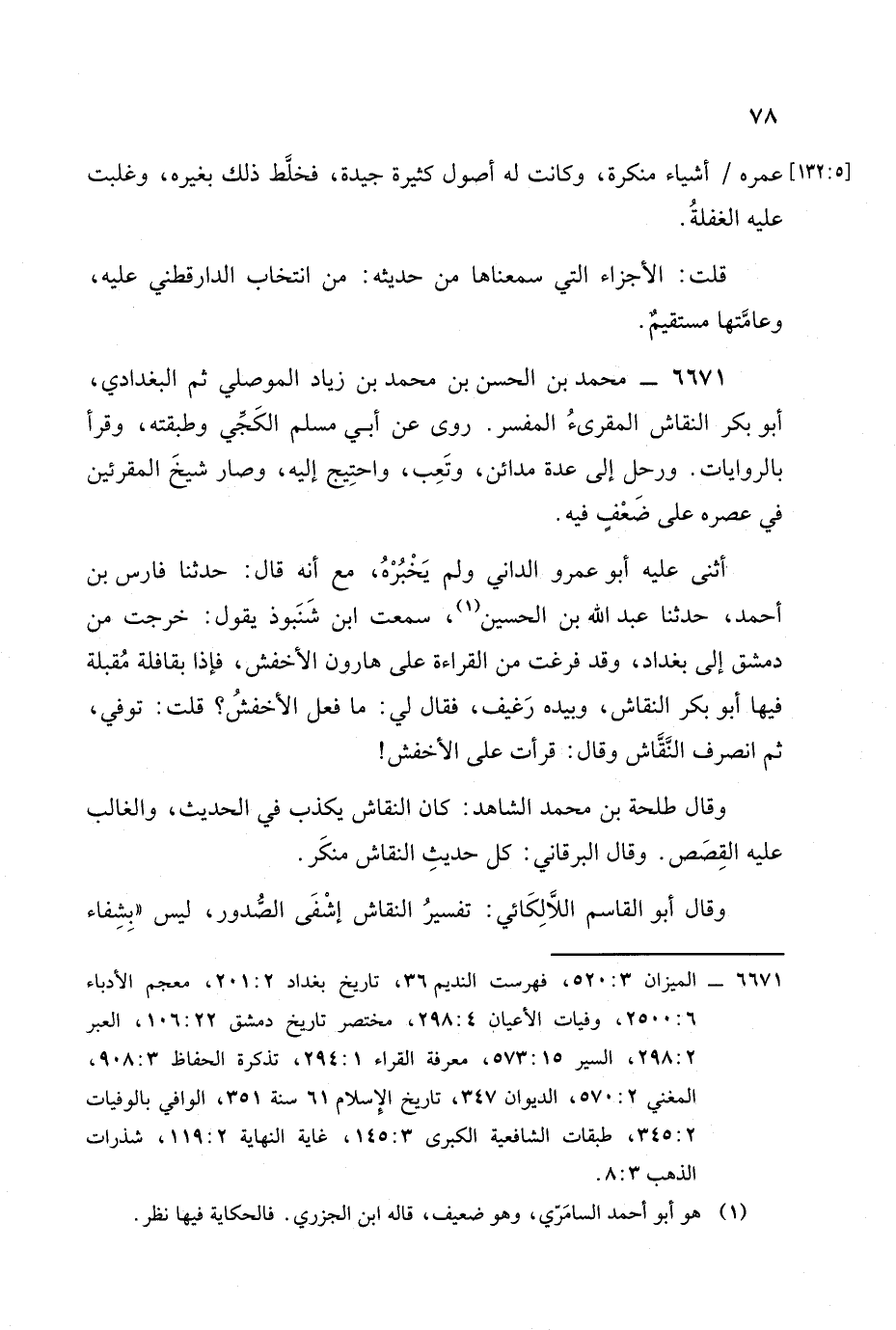 6671 - محمد بن الحسن بن محمد بن زياد الموصلي ثم البغدادي أبو بكر النقاش المقرىء المفسر [وهو محمد بن أبي سعيد الموصلي]
