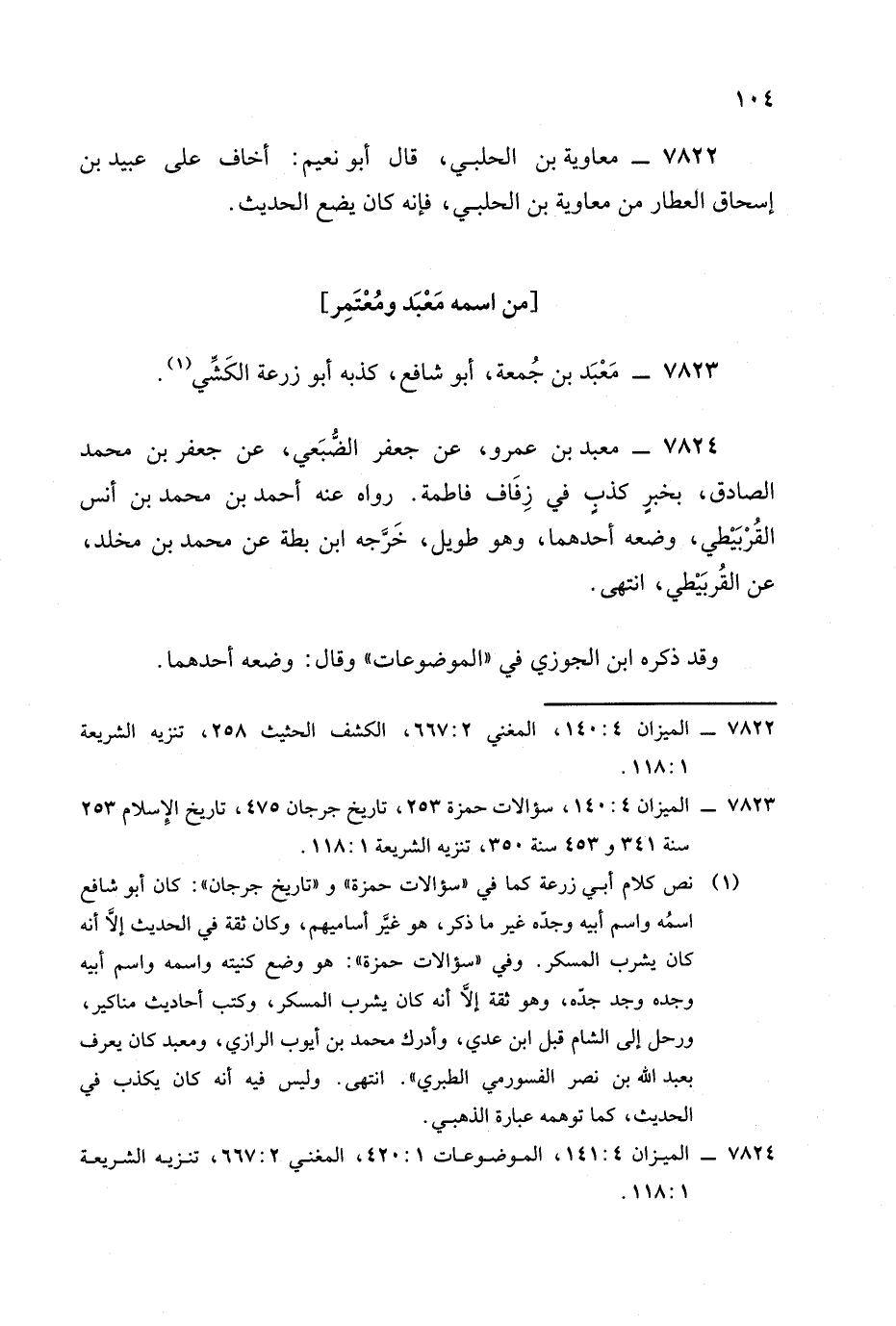 عن جعفر الضبعي عن جعفر بن محمد الصادق بخبر كذب في زفاف فاطمة.
