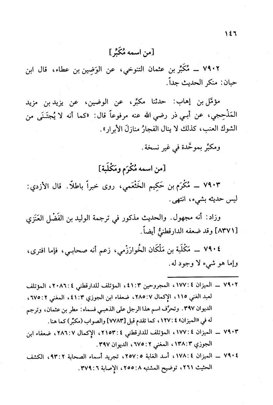 وروى أبو بكر المفيد الجرجرائي عن المظفر عن مكلبة حديثا آخر باطلا فهذا إما وضعه المظفر وإما مكلبة , وكان في حدود أربعين ومِئَة , انتهى. -[148]-
