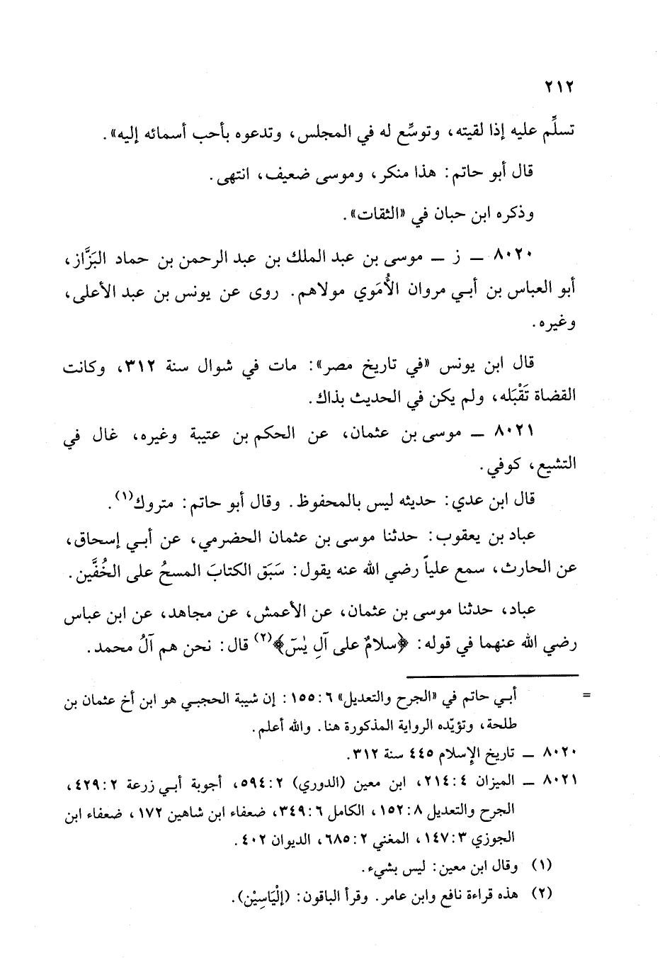 8020 - (ز): موسى بن عبد الملك بن عبد الرحمن بن حماد البزاز أبو العباس بن أبي مروان الأموي مولاهم.