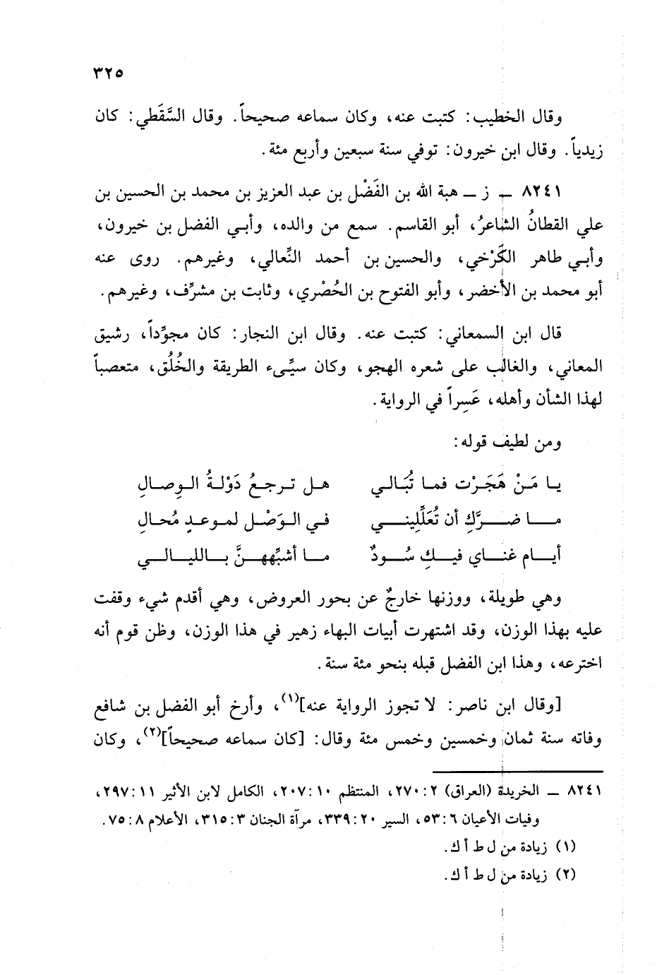 8241 - (ز): هبة الله بن الفضل بن عبد العزيز بن محمد بن الحسين بن علي القطان الشاعر أبو القاسم.