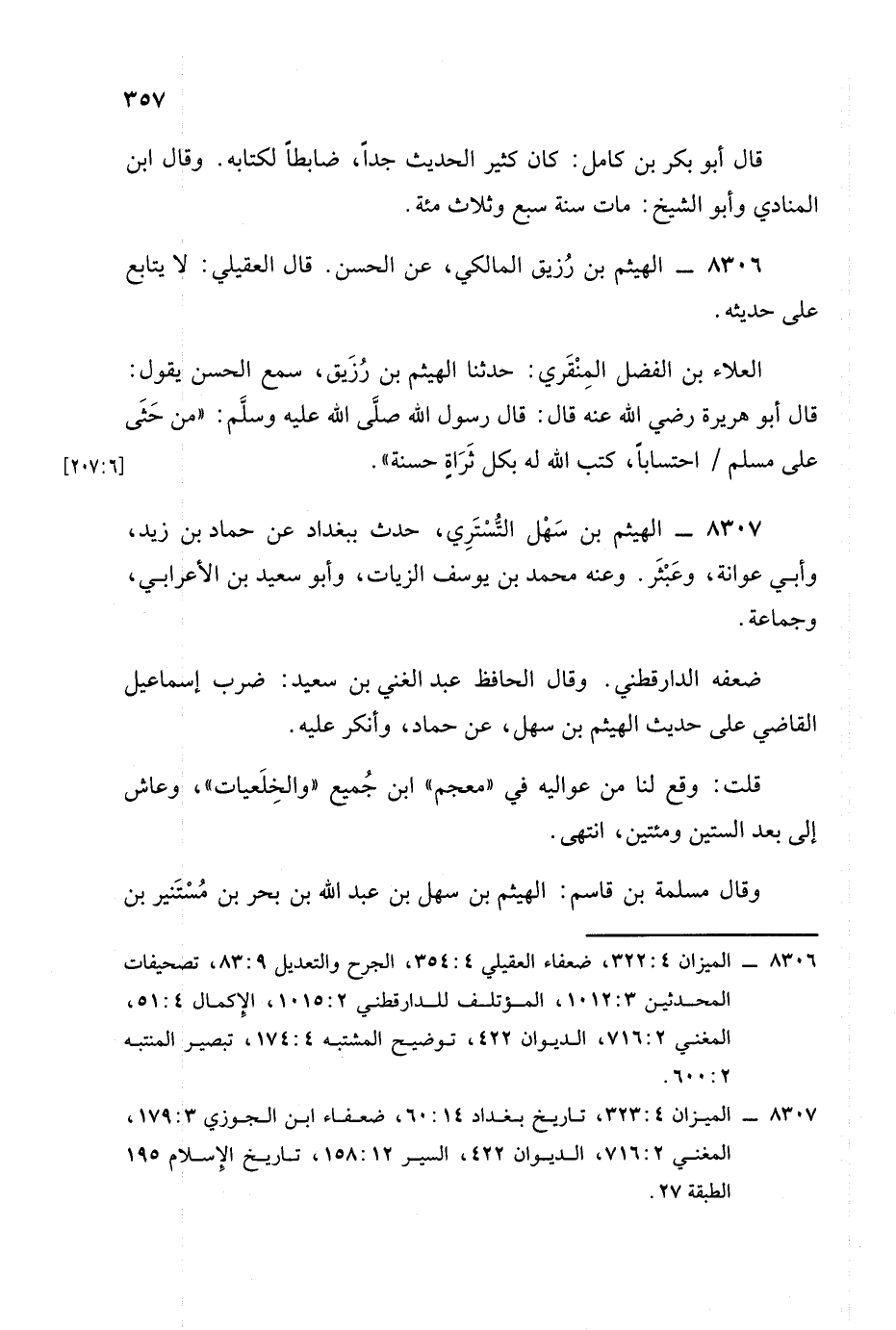 8307 - الهيثم بن سهل [بن عبد الله بن بحر بن مستنير بن مدرك بن صعصعة بن صخر الزبيدي] التستري [أَبُو بشر]