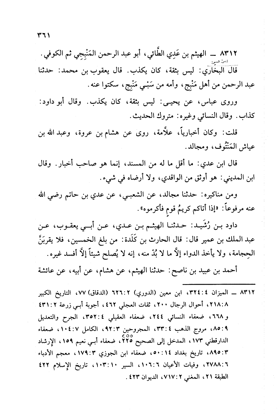 8312 - الهيثم بن عَدِي الطائي أبو عبد الرحمن المنبجي ثم الكوفي.