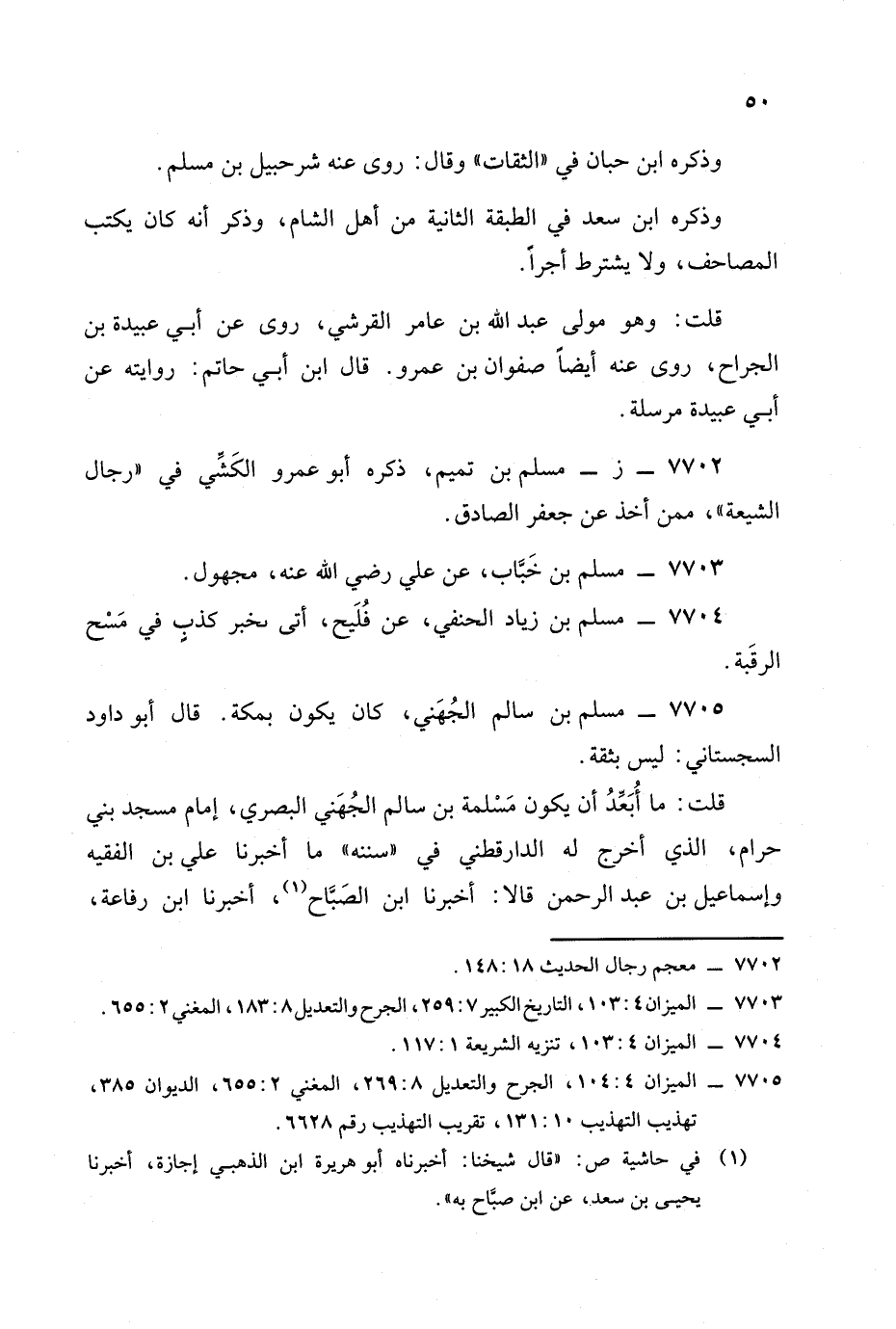 قلت: ما أبعد أن يكون مسلمة بن سالم الجهني البصري إمام مسجد بني حرام الذي أخرج له الدارقطني في سننه ما أخبرنا علي بن الفقيه وإسماعيل بن عبد الرحمن قالا: أخبرنا ابن الصباح أخبرنا ابن رفاعة -[51]-