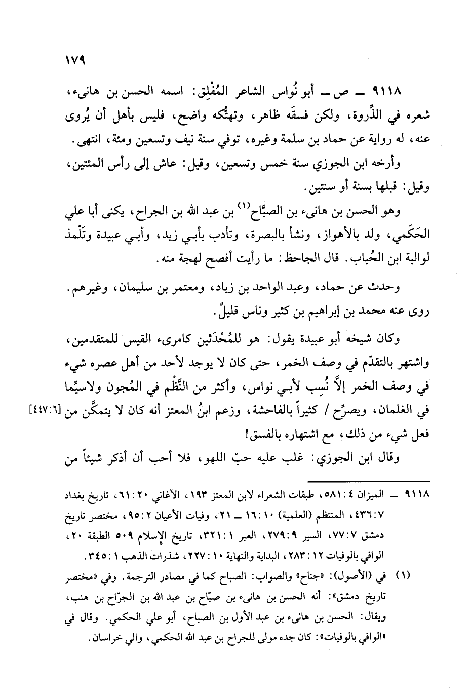 9118 - ص- أبو نواس الشاعر المفلق , اسمه: الحسن بن هانىء [يكنى أبا علي الحكمي]
