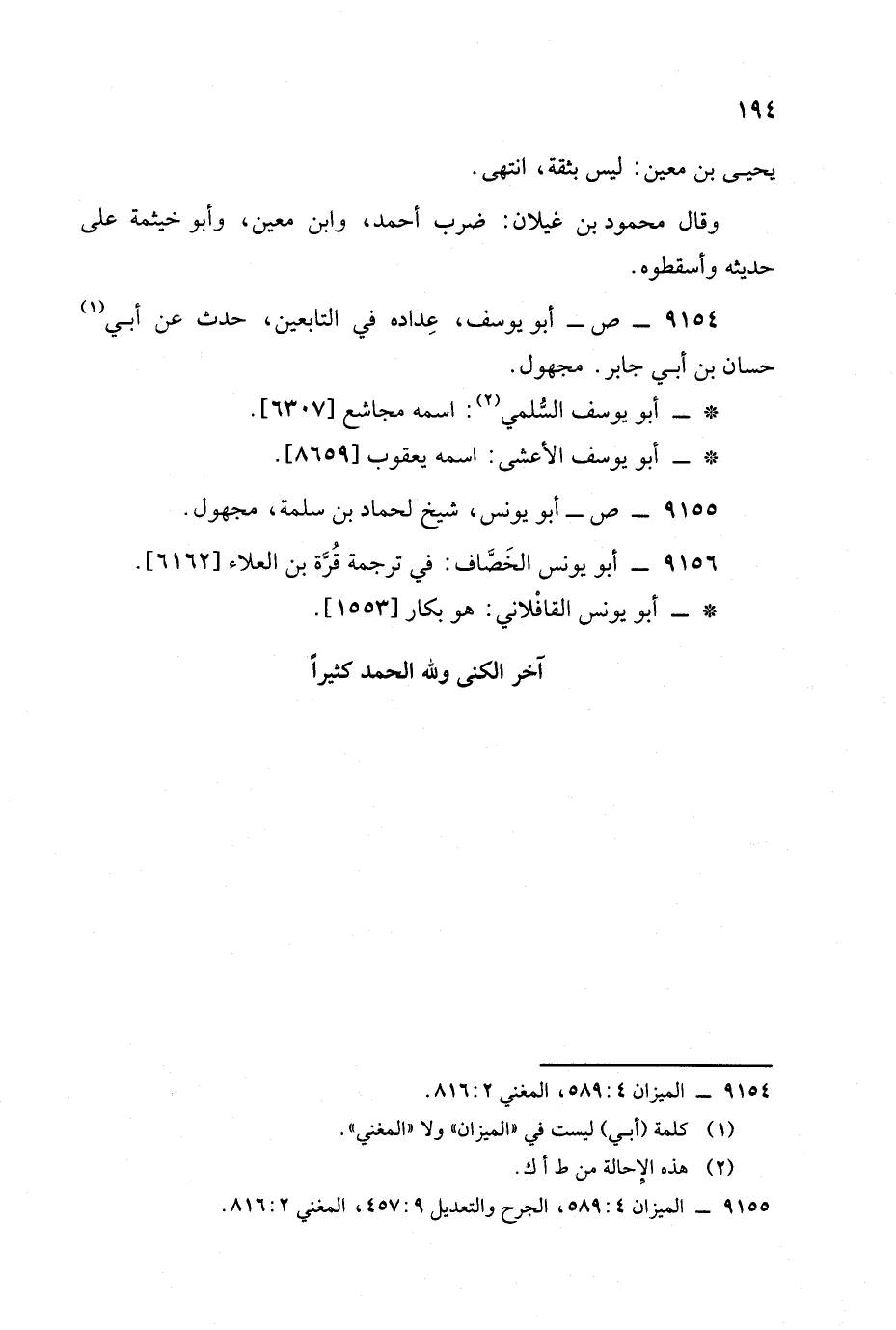 آخر الكنى ولله الحمد كثيرا.