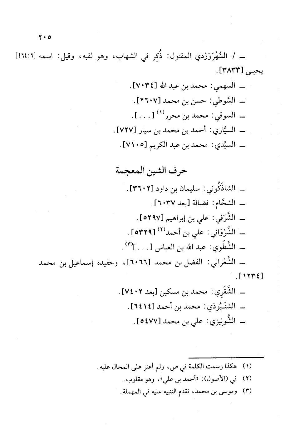 - السهروردي المقتول: ذكر في الشهاب وهو لقبه وقيل: اسمه يحيى [2833].