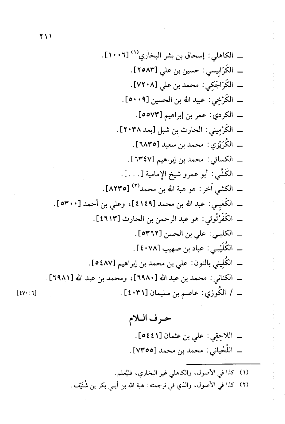 - الكعبي: عبد الله بن محمد [4149] وعلي بن أحمد [5300].