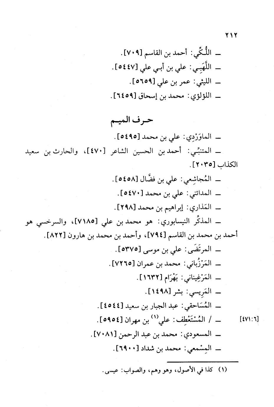 - المتنبي: أحمد بن الحسين الشاعر [470] والحارث بن سعيد الكذاب [2035].