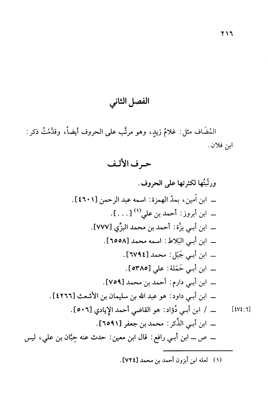 مثل: غلام زيد , وهو مرتب على الحروف أيضًا وقدمت ذكر: ابن فلان.