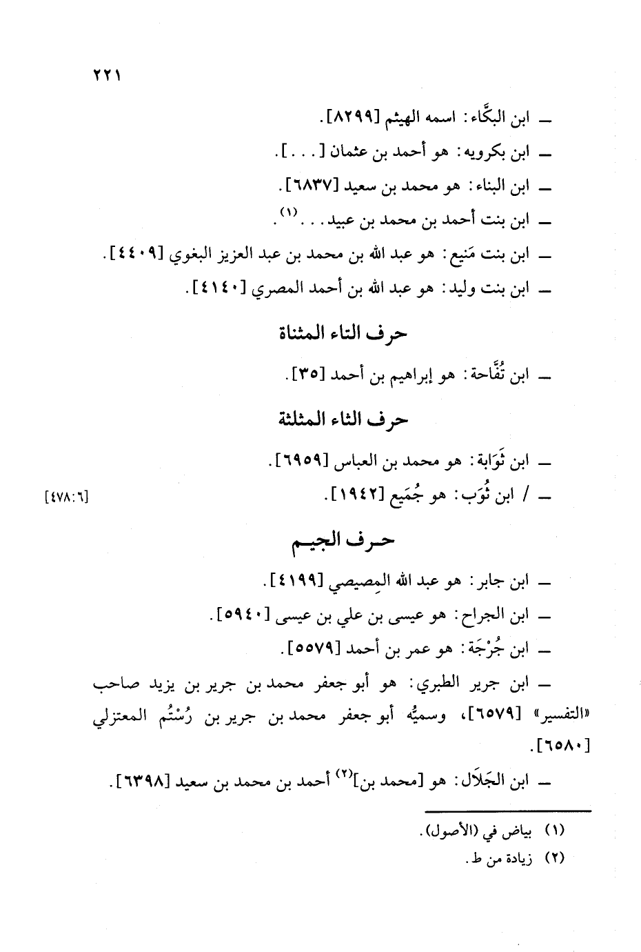 - ابن جرير الطبري: هو أبو جعفر محمد بن جرير بن يزيد صاحب التفسير [6579] وسميه أبو جعفر محمد بن جرير بن رستم المعتزلي [6580].