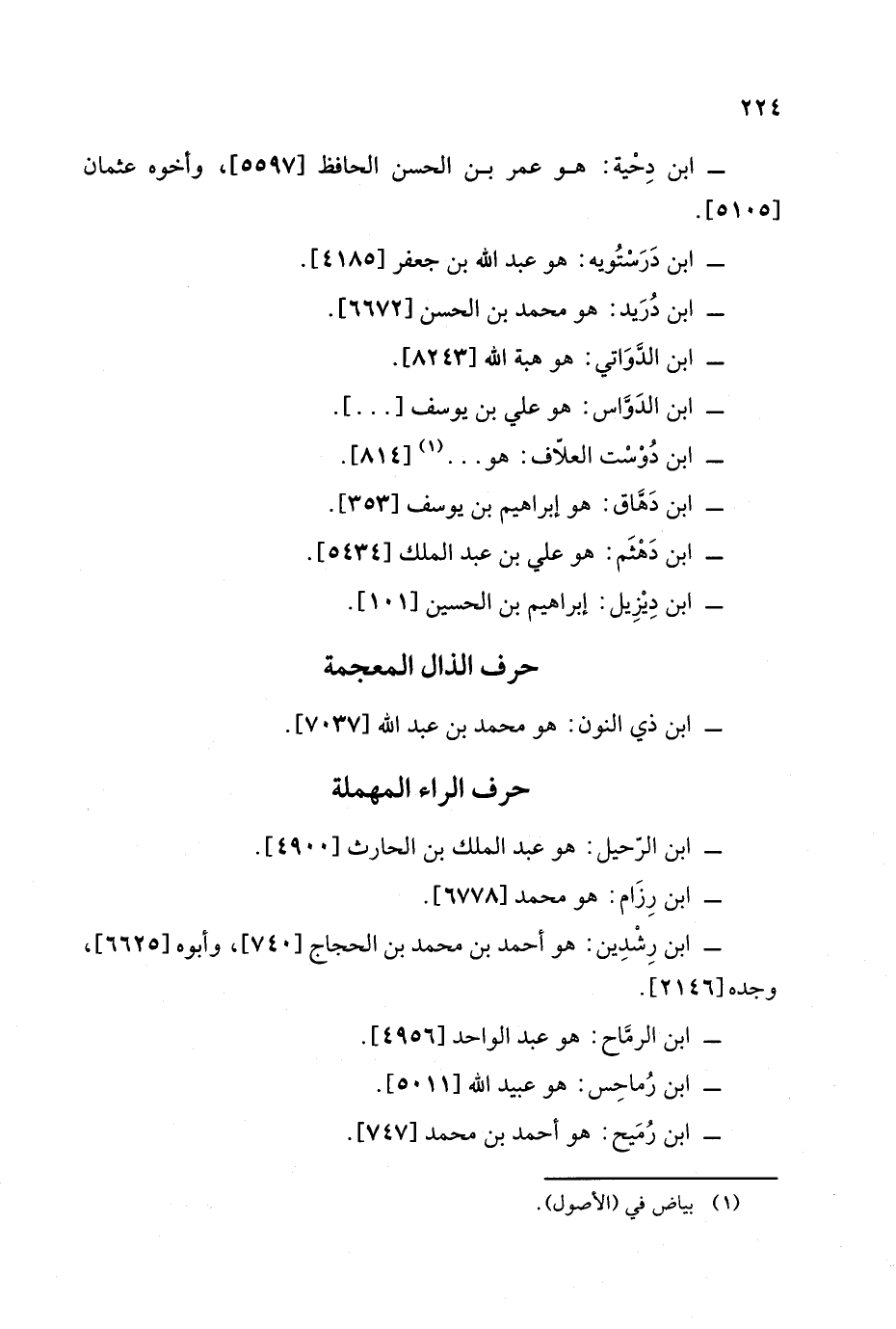 - ابن رشدين: هو أحمد بن محمد بن الحجاج [740] وأبوه [6625] وجده [2146].