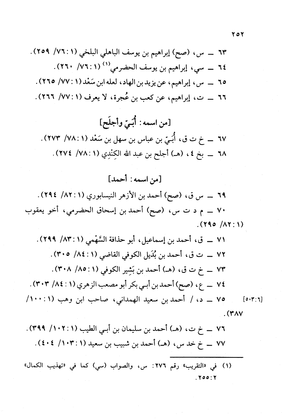 63 - س , (صح) إبراهيم بن يوسف الباهلي البلخي (1: 76/ 259).