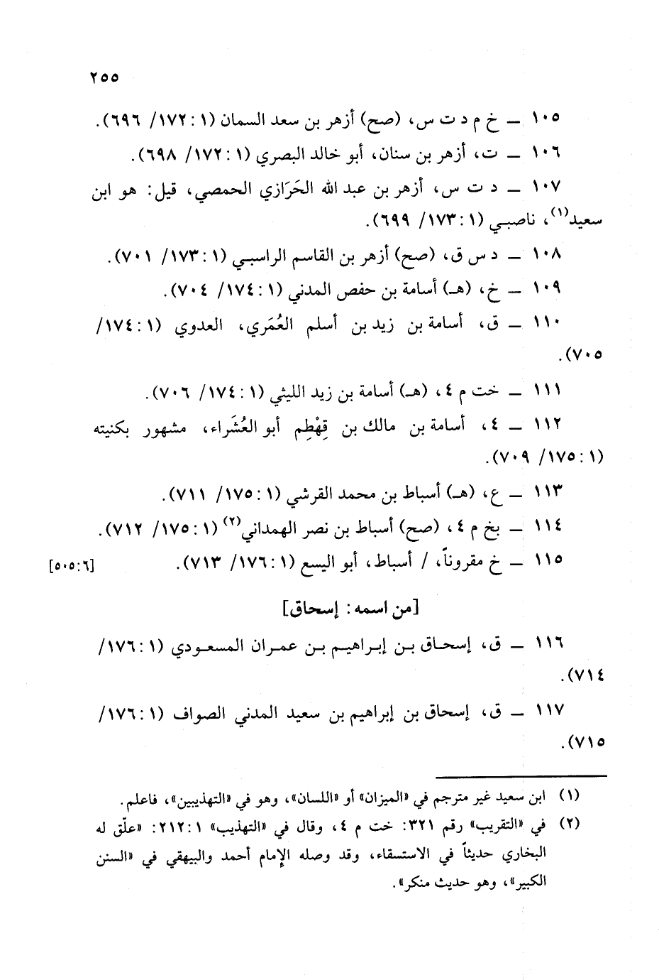 110 - ق , أسامة بن زيد بن أسلم العمري العدوي (1: 174/ 705).