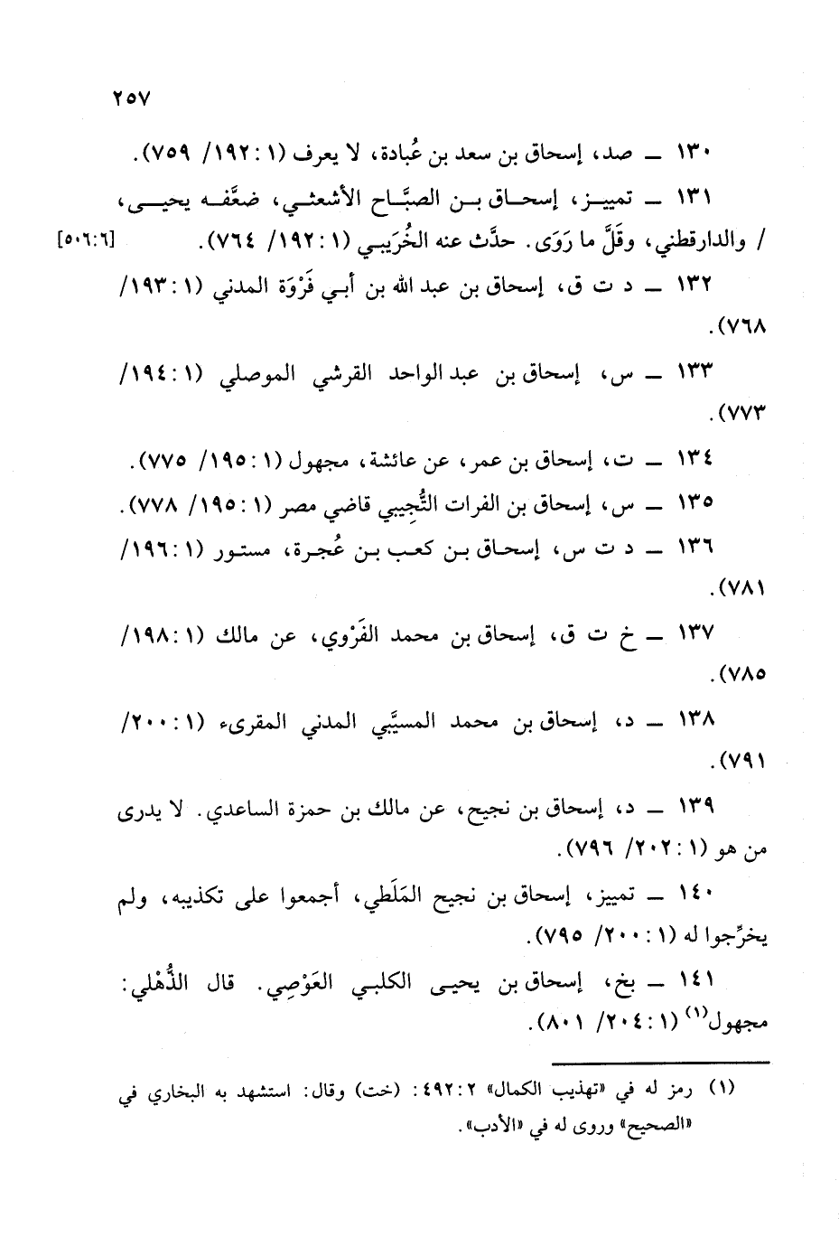 133 - س , إسحاق بن عبد الواحد القرشي الموصلي (1: 194/ 773).