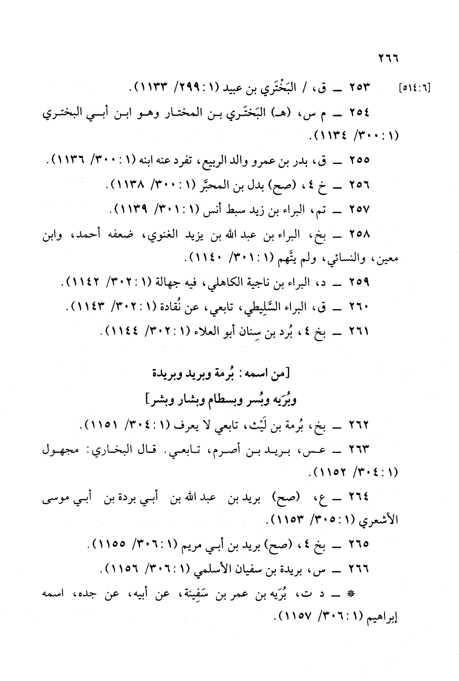 261 - بخ4 , برد بن سنان أبو العلاء (1: 302/ 1144).