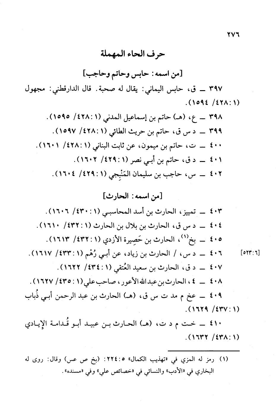 409 - عخ م مد ت س ق , (هـ) الحارث بن عبد الرحمن أبي ذباب (1: 437/ 1629).