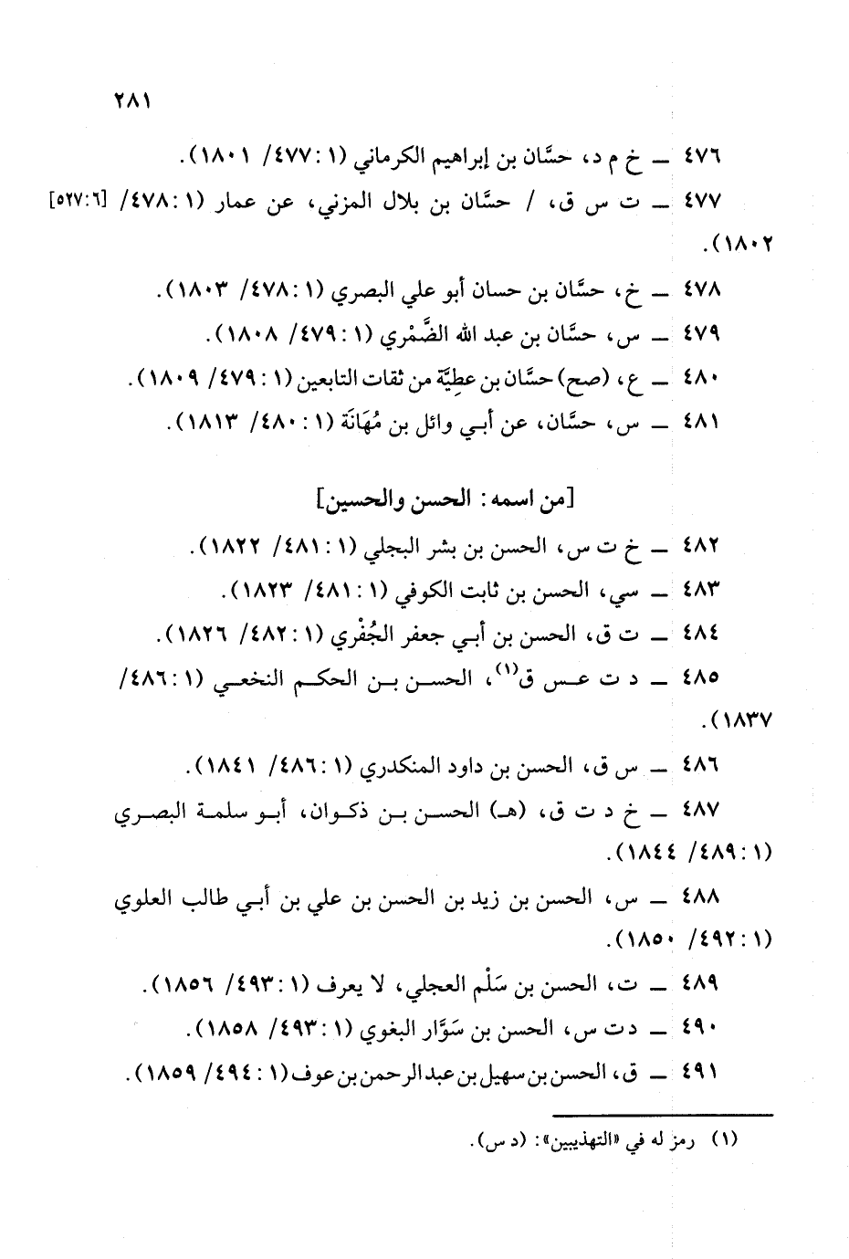 476 - خ م د , حسان بن إبراهيم الكرماني (1: 477/ 1801).