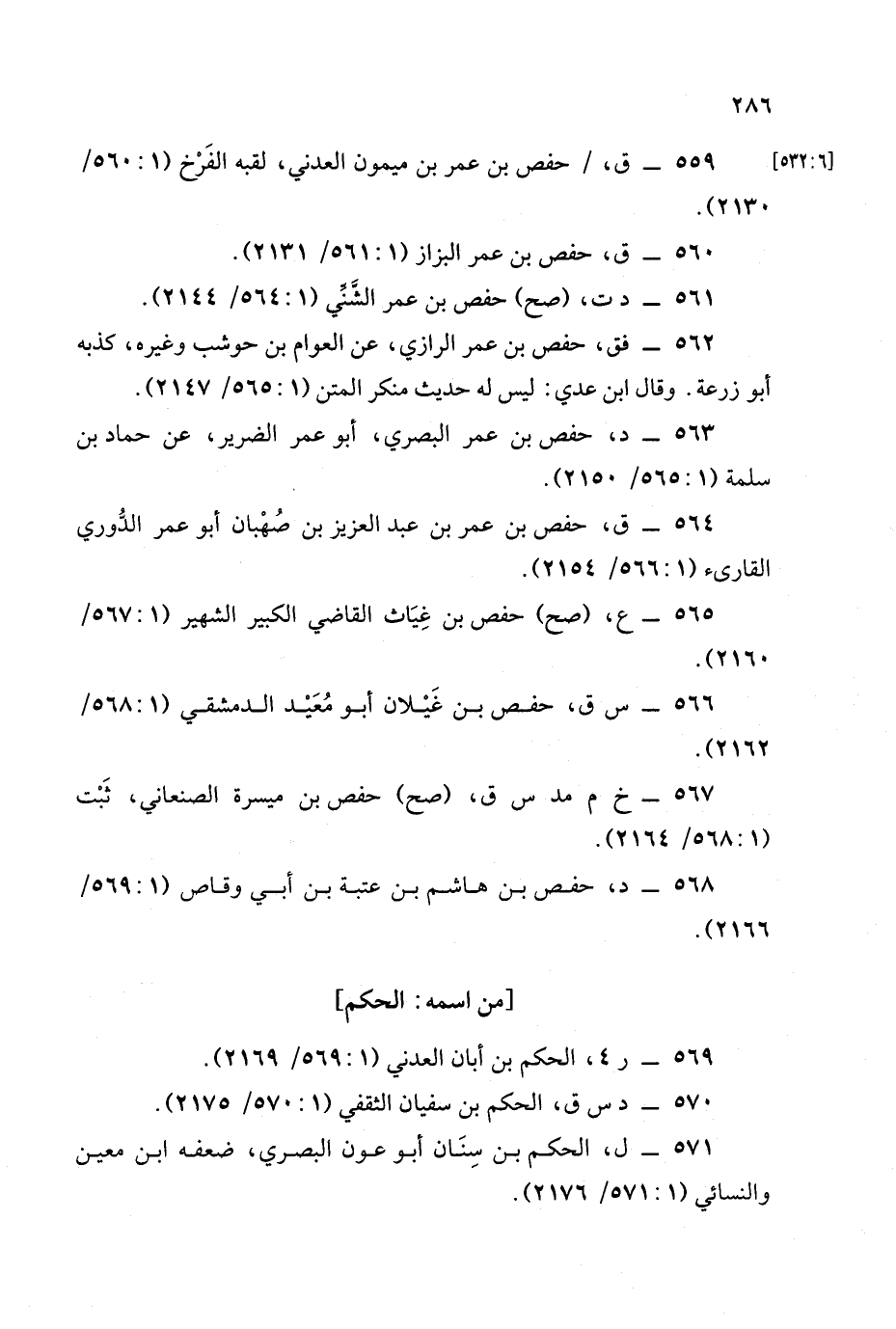 560 - ق , حفص بن عمر البزاز (1: 561/ 2131).