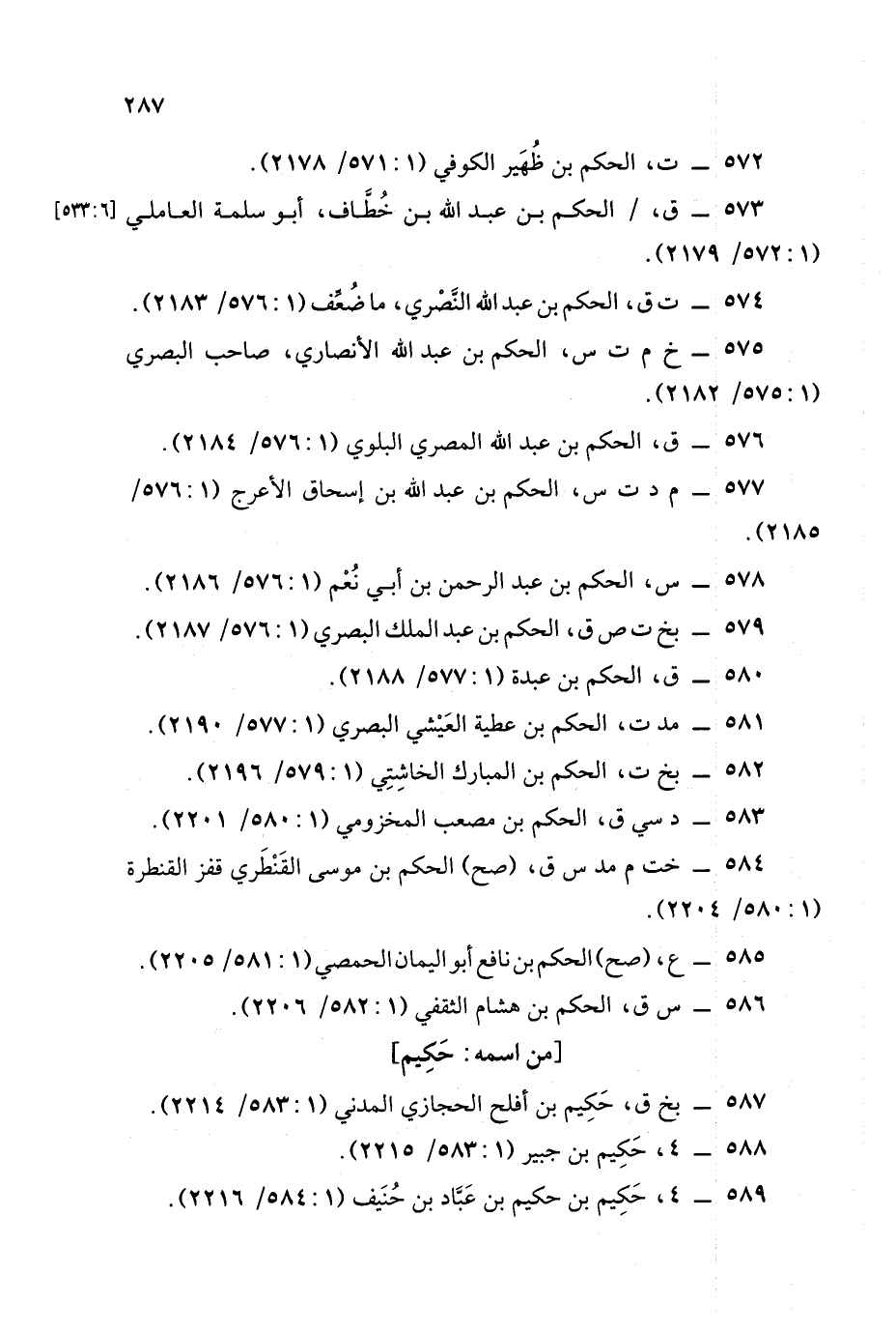 579 - بخ ت ص ق , الحكم بن عبد الملك البصري (1: 576/ 2187).