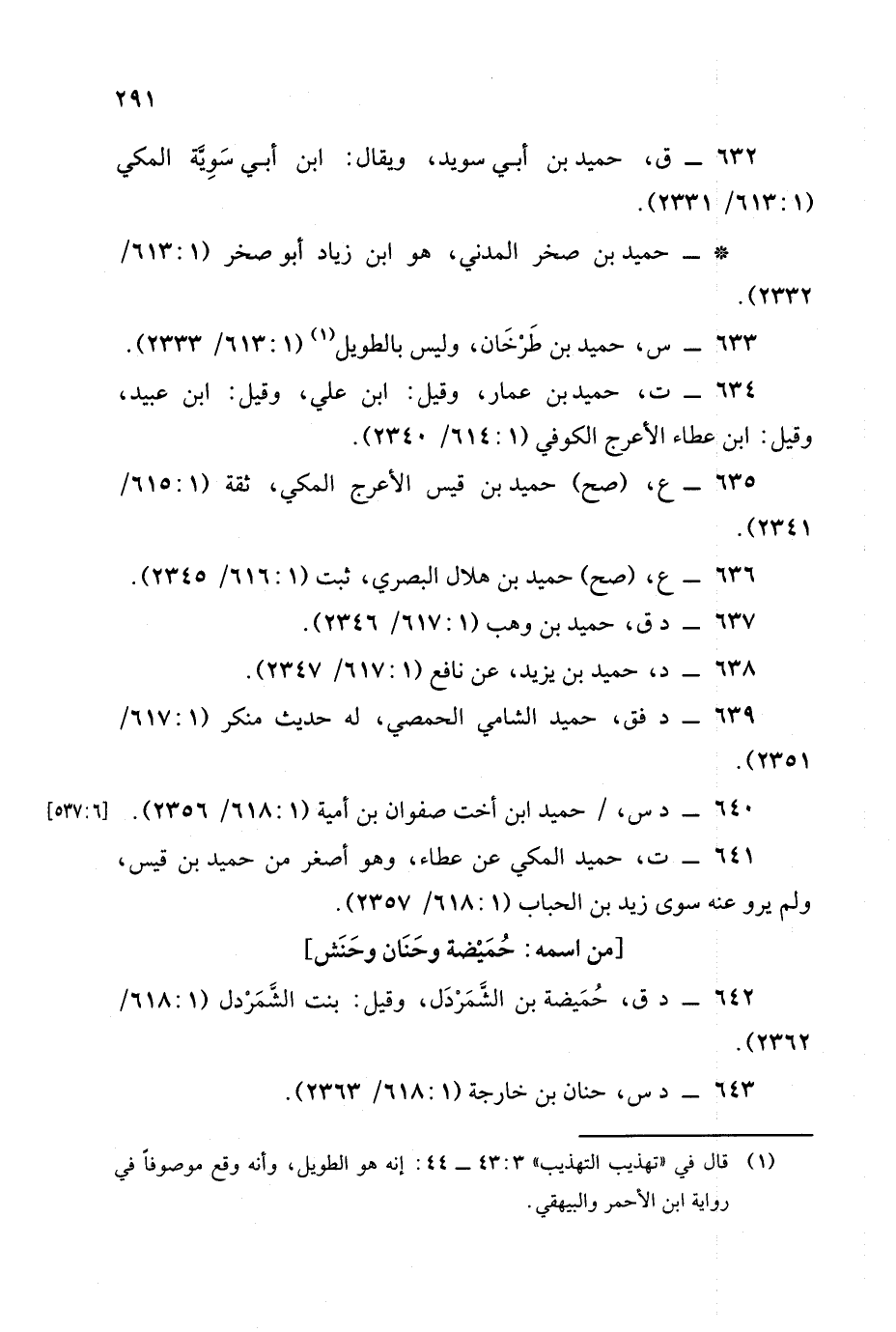 633 - س , حميد بن طرخان , وليس بالطويل (1: 613/ 2333).