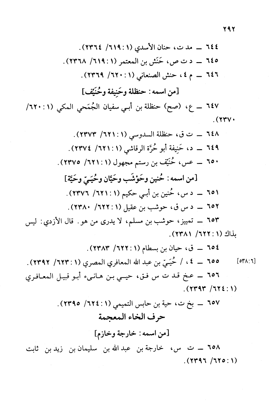 657 - بخ ت , حية بن حابس التميمي (1: 624/ 2395).