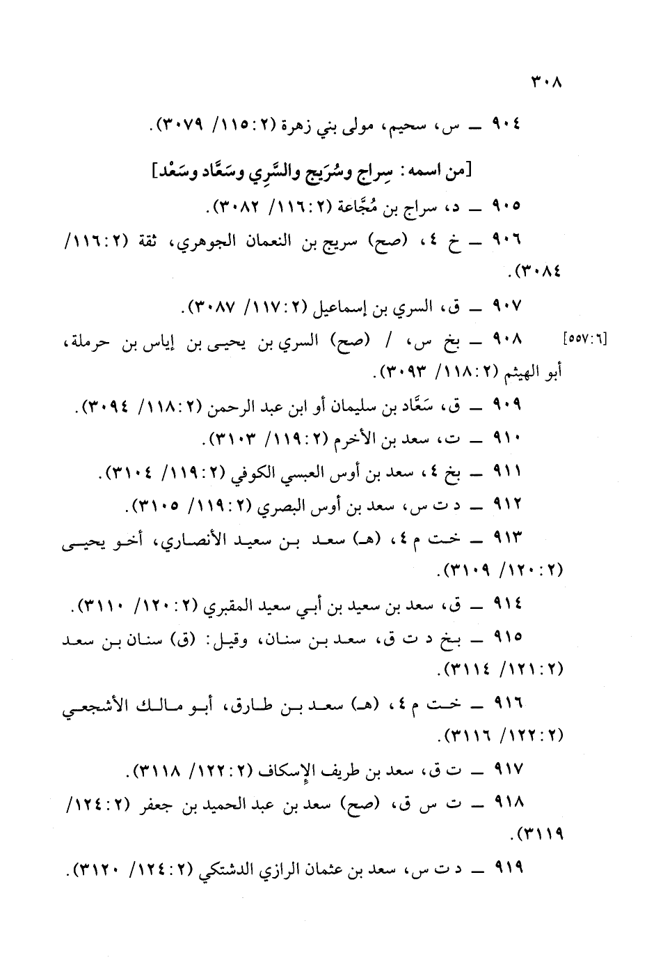 918 - ت س ق , (صح) سعد بن عبد الحميد بن جعفر (2: 124/ 3119).