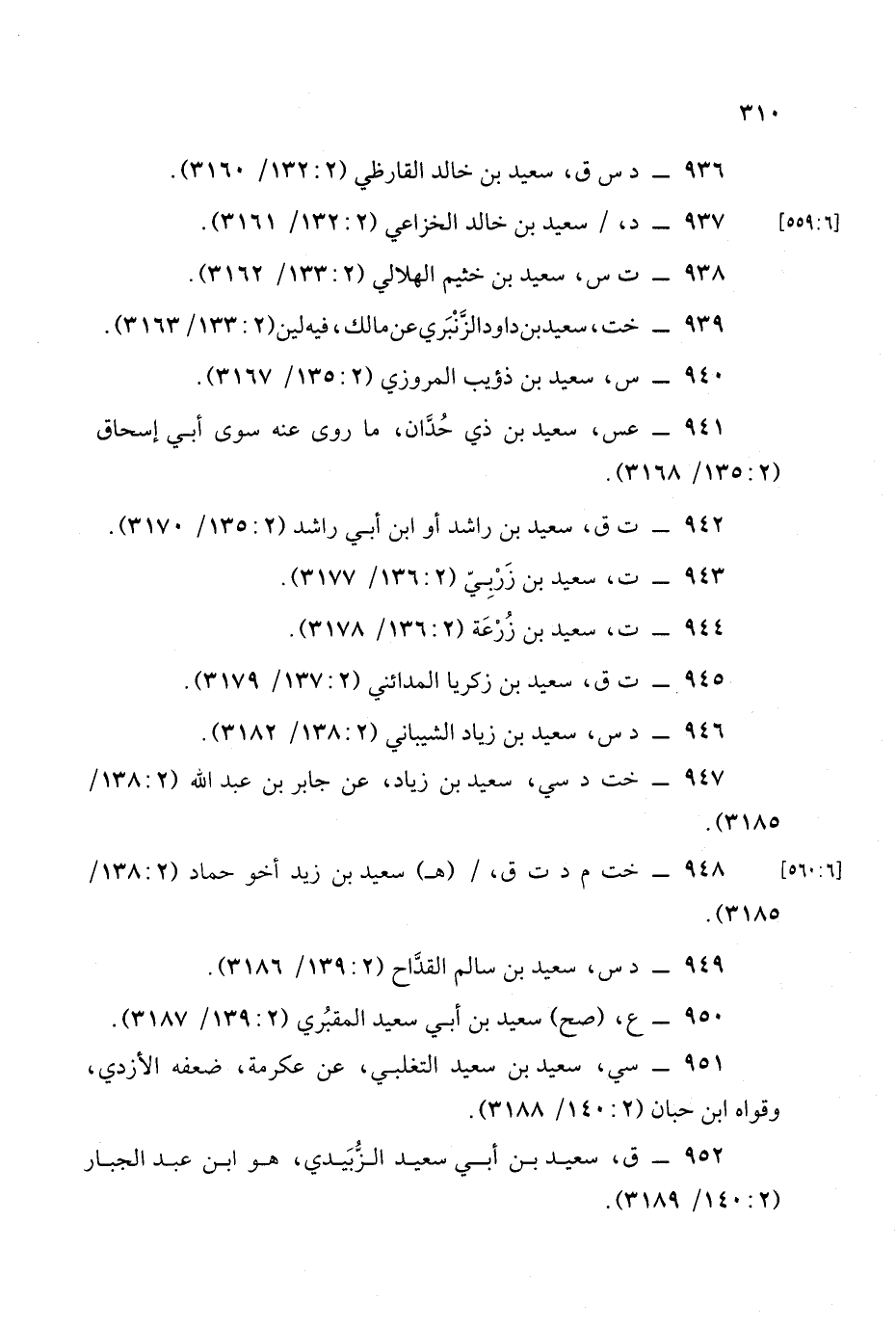 938 - (ت س) سعيد بن خثيم الهلالي (2: 133/ 3162).