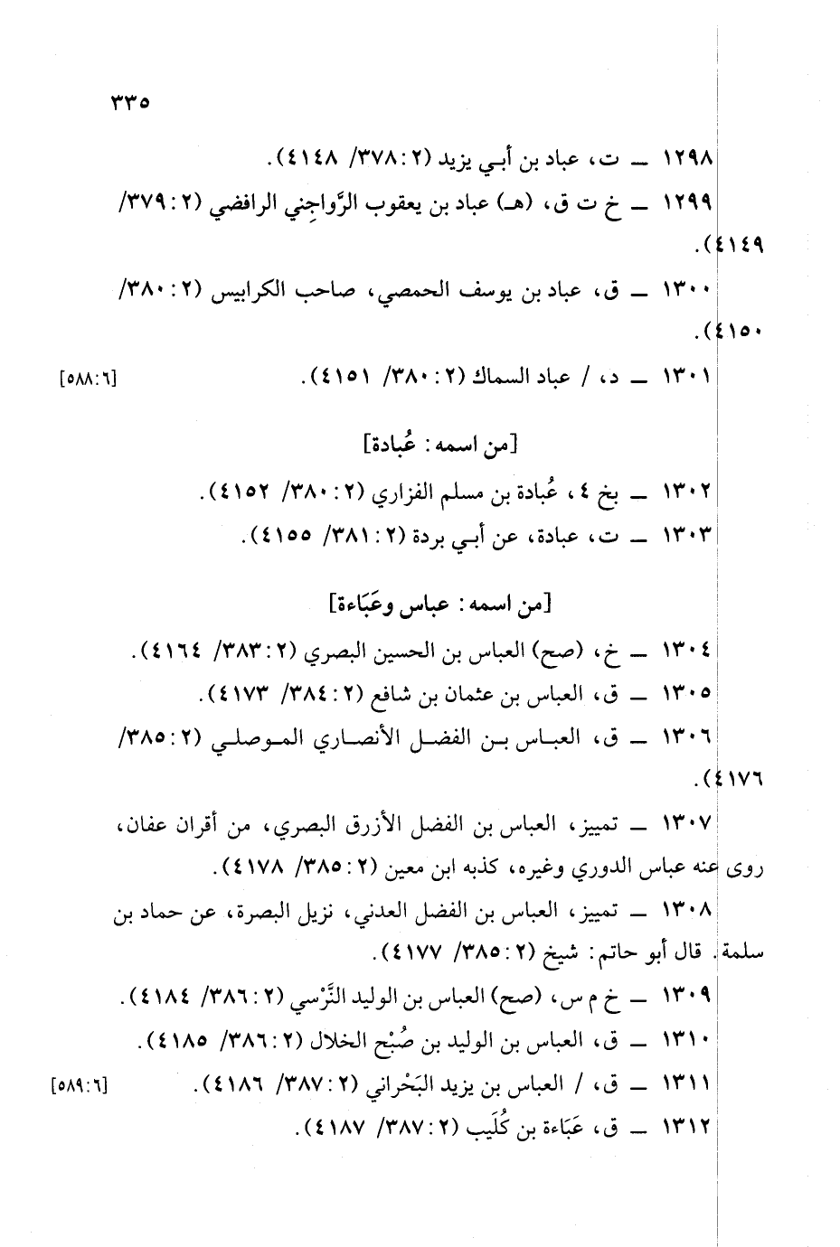1300 - ق , عباد بن يوسف الحمصي صاحب الكرابيس (2: 380/ 4150).
