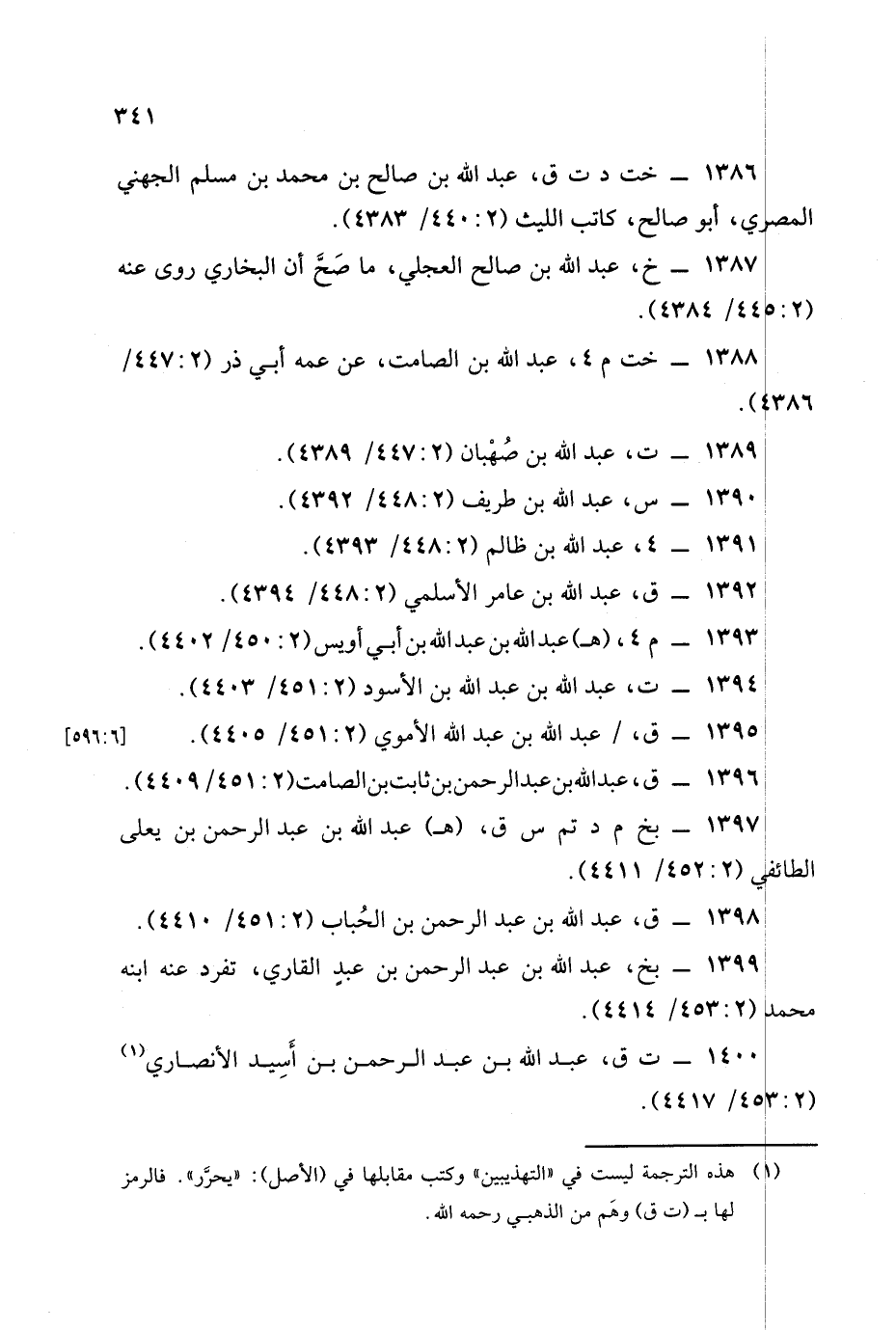 1400 - ت ق , عبد الله بن عبد الرحمن بن أسيد الأنصاري (2: 453/ 4417).