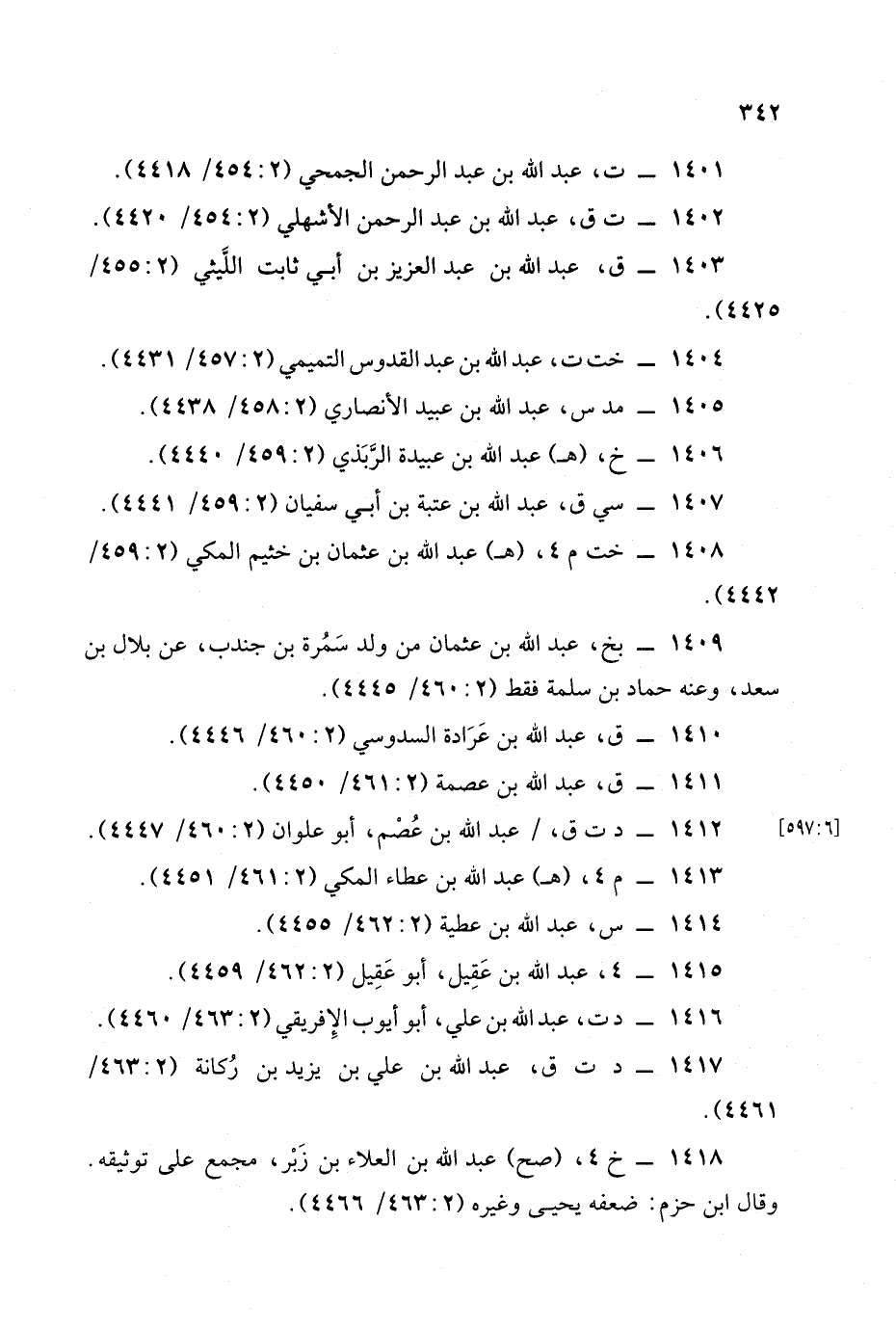 1402 - ت ق , عبد الله بن عبد الرحمن الأشهلي (2: 454/ 4420).