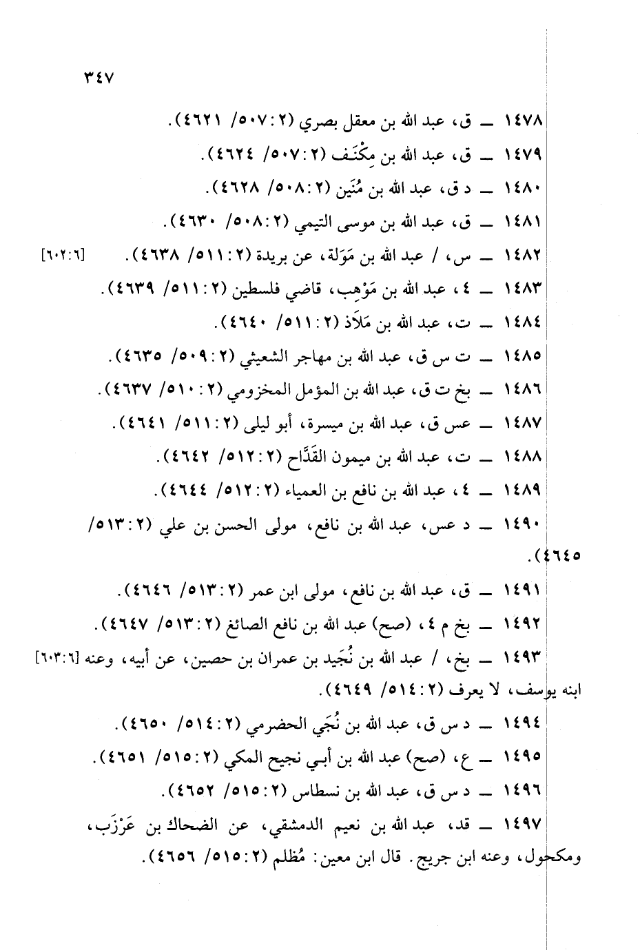 1485 - ت س ق , عبد الله بن مهاجر الشعيثي (2: 509/ 4635).