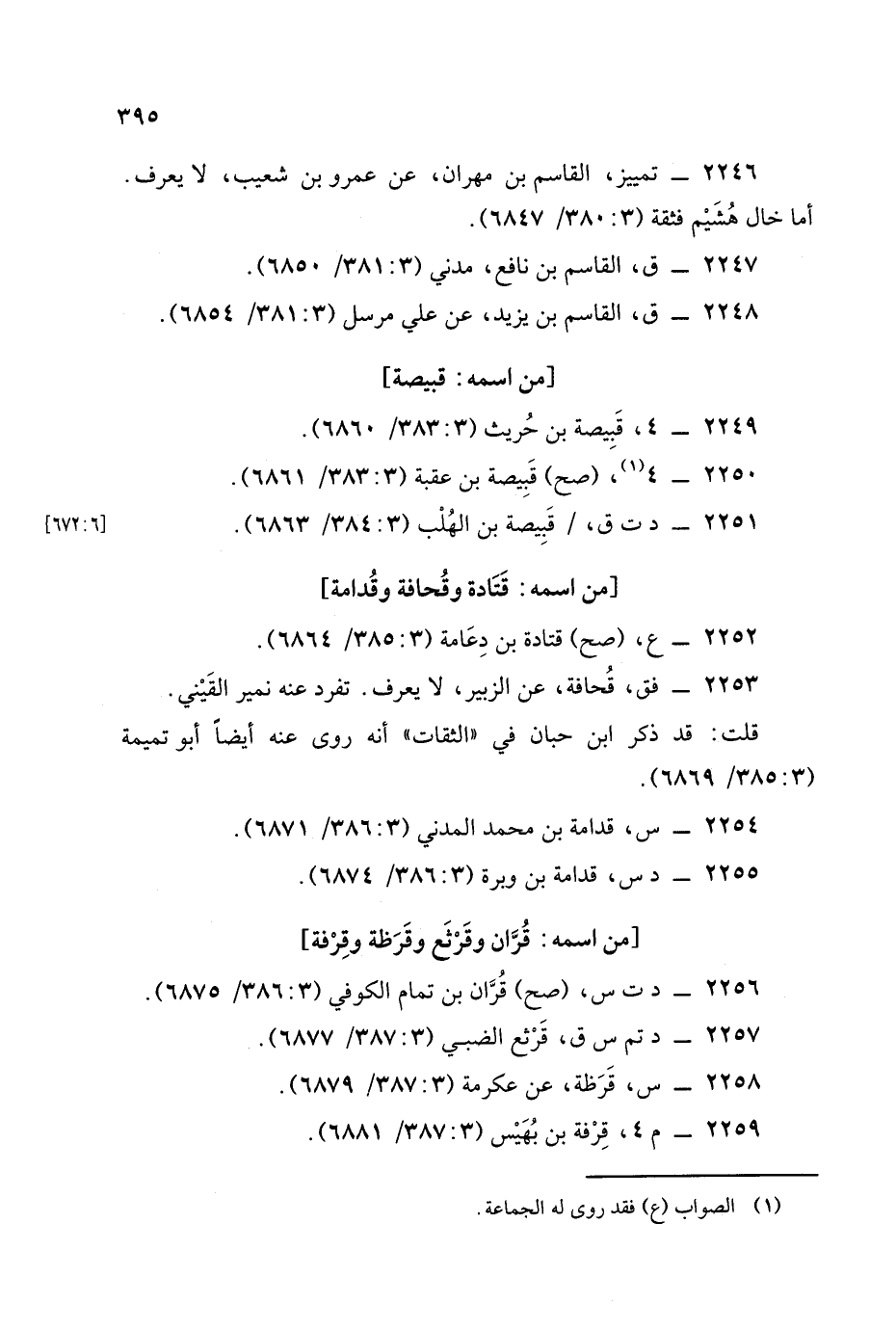 2256 - د ت س , (صح) قران بن تمام الكوفي (3: 386/ 6875).