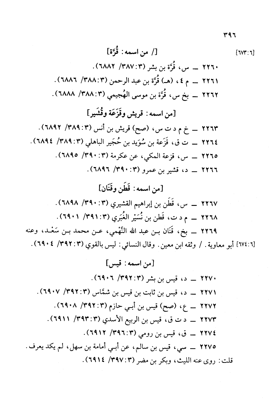 2263 - خ م د ت س , (صح) قريش بن أنس (3: 389/ 6892).