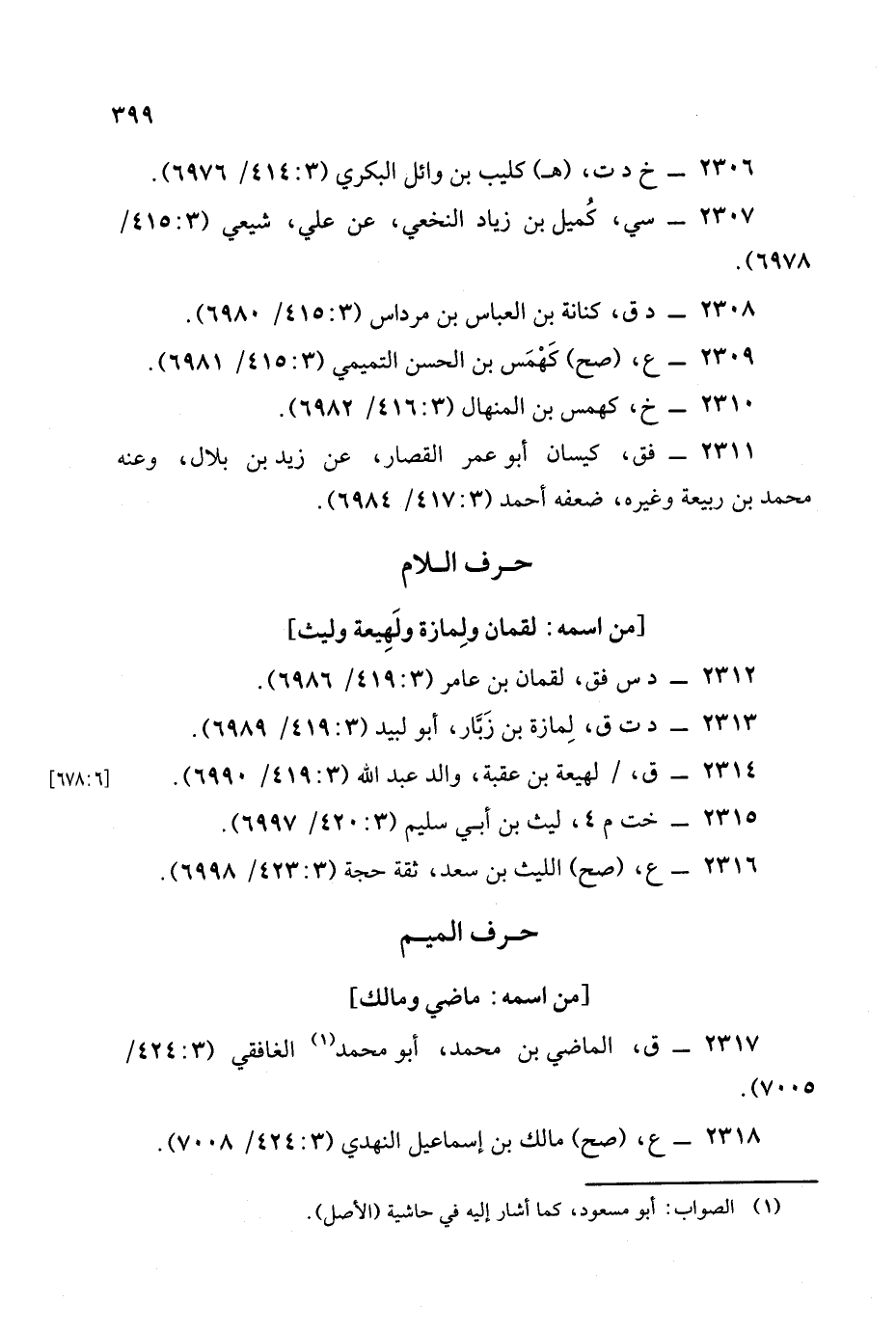 2318 - (ع) (صح) مالك بن إسماعيل النهدي (3: 424/ 7008).