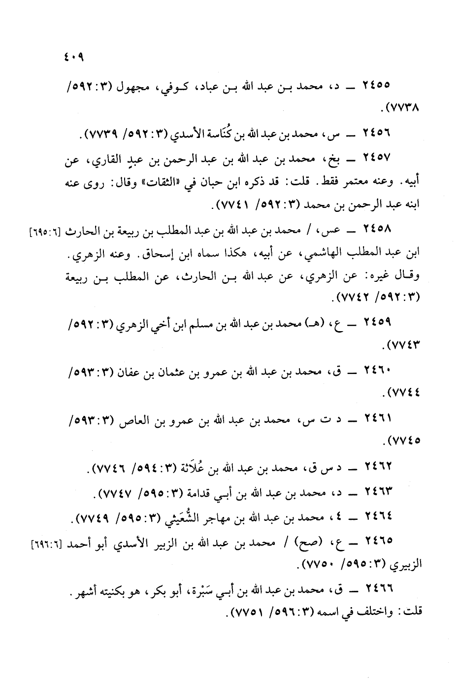 2456 - س , محمد بن عبد الله بن كناسة الأسدي (3: 592/ 7739).