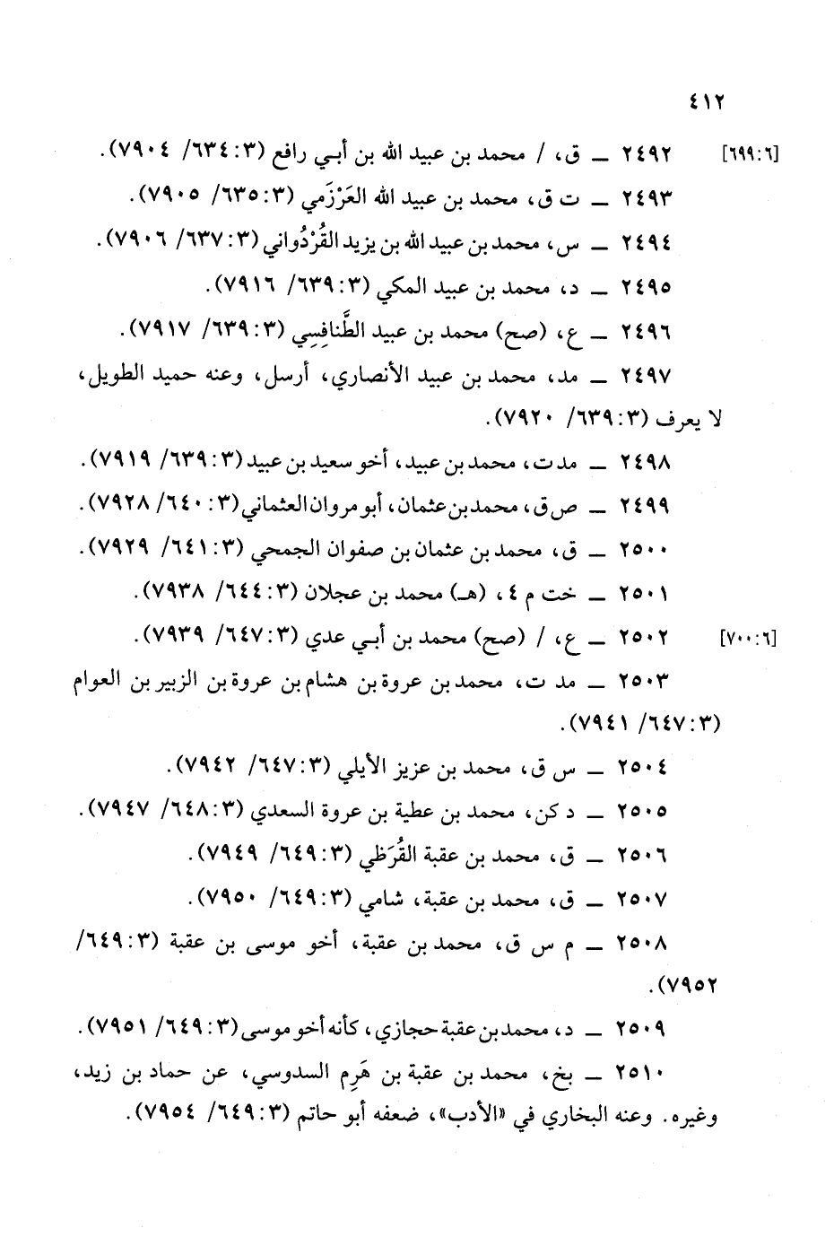 2508 - م س ق , محمد بن عقبة أخو موسى بن عقبة (3: 649/ 7952).