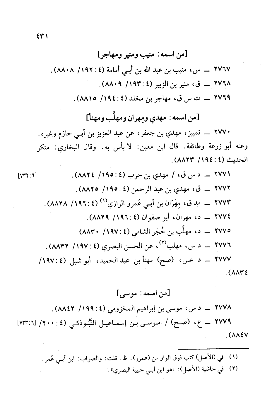 2769 - ت س ق , مهاجر بن مخلد (4: 194/ 8815).