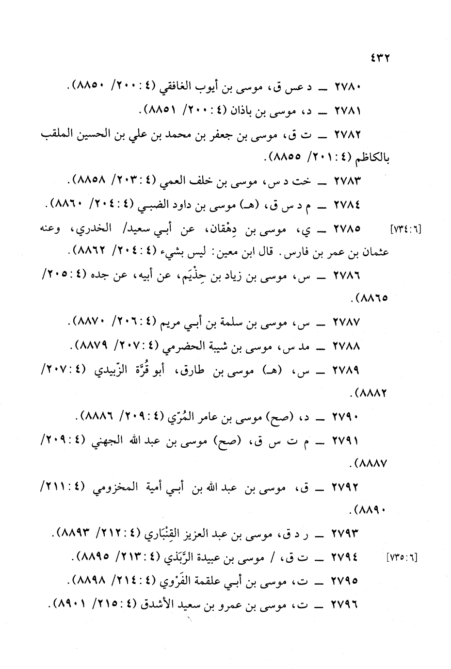 2782 - ت ق , موسى بن جعفر بن محمد بن علي بن الحسين الملقب بالكاظم (4: 201/ 8855).