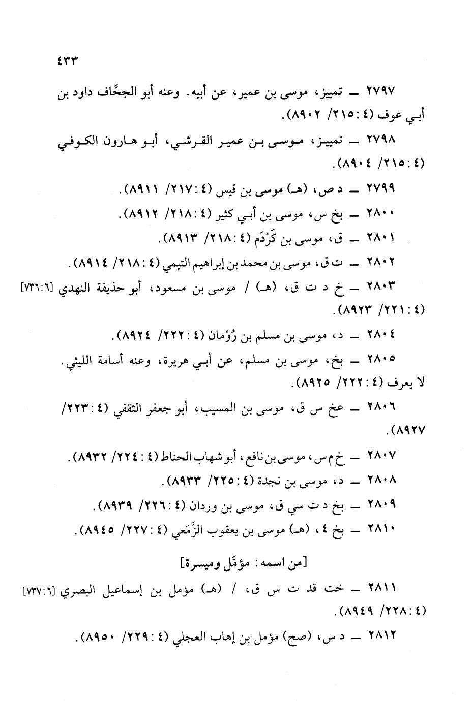 2800 - بخ س , موسى بن أبي كثير (4: 218/ 8912).