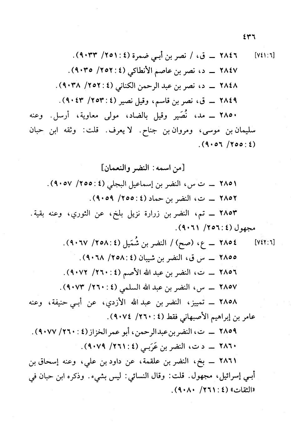 2860 - د ت , النضر بن عربي (4: 261/ 9079).