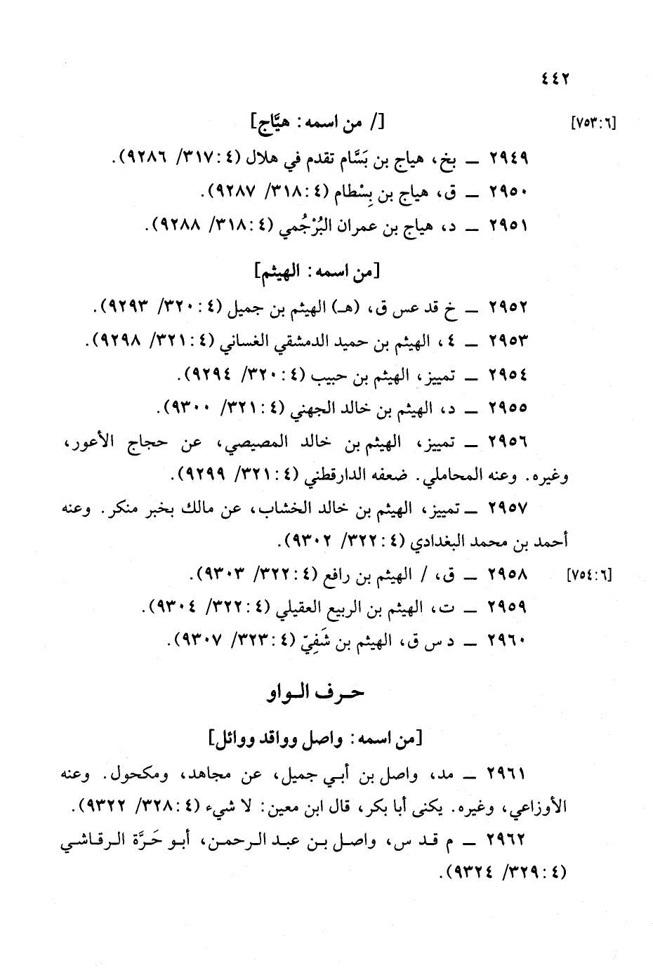 2952 - خ قد عس ق , (هـ) الهيثم بن جميل (4: 320/ 9293).
