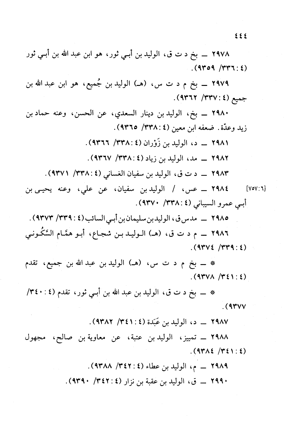 2987 - د، الوليد بن عبدة (4: 341/ 9382).