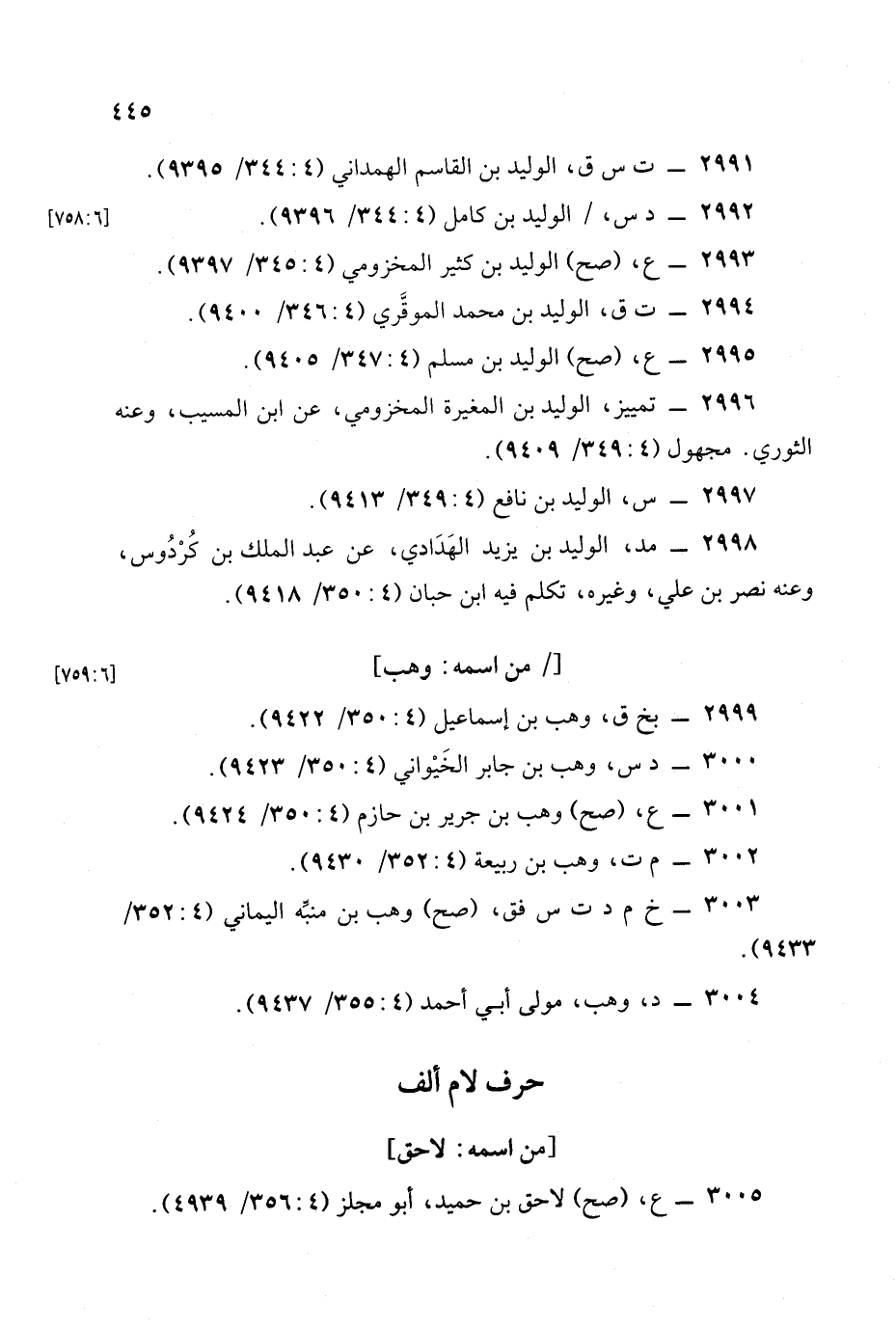 3001 - (ع) (صح) وهب بن جرير بن حازم (4: 350/ 9424).