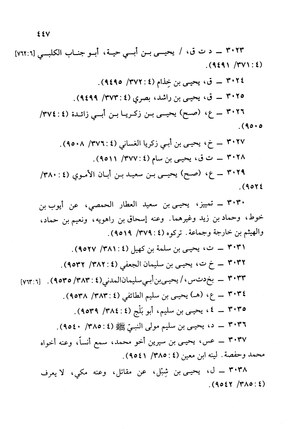 3029 - (ع) (صح) يحيى بن سعيد بن أبان الأموي (4: 380/ 9524).