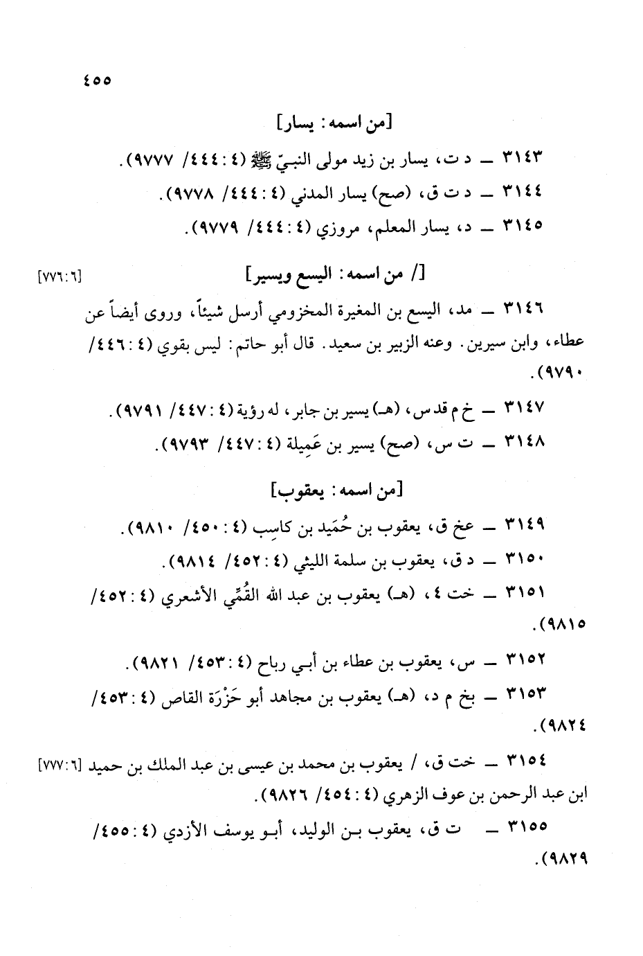 3150 - د ق، يعقوب بن سلمة الليثي (4: 452/ 9814).