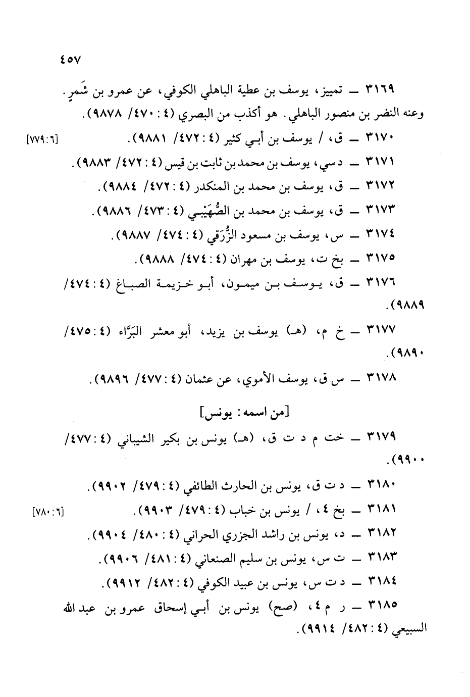 3179 - خت م د ت ق , (هـ) يونس بن بكير الشيباني (4: 477/ 9900).