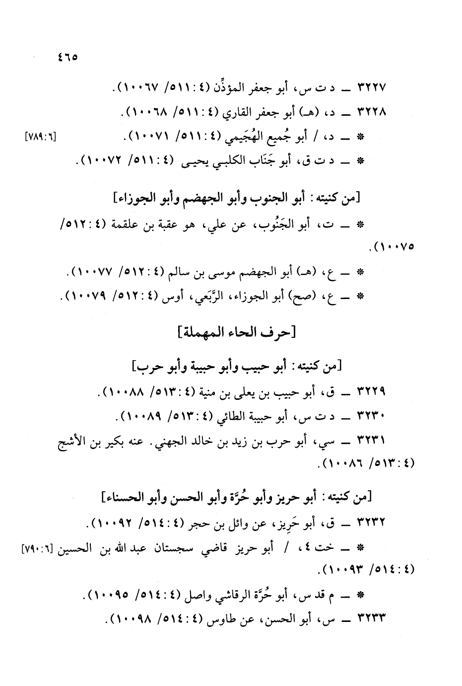 • د ت ق، أبو جناب الكلبي يحيى (4: 511/ 10072).