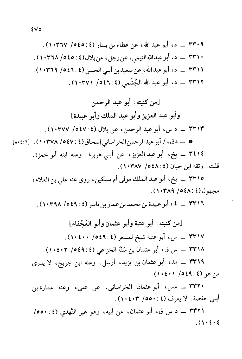 3317 - (س) أبو عتبة شيخ لمسعر (4: 549/ 10400).