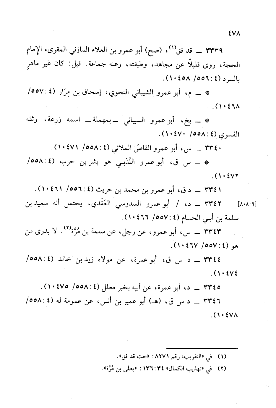 3340 - (س) أبو عمرو القاص الملائي (4: 558/ 10471).